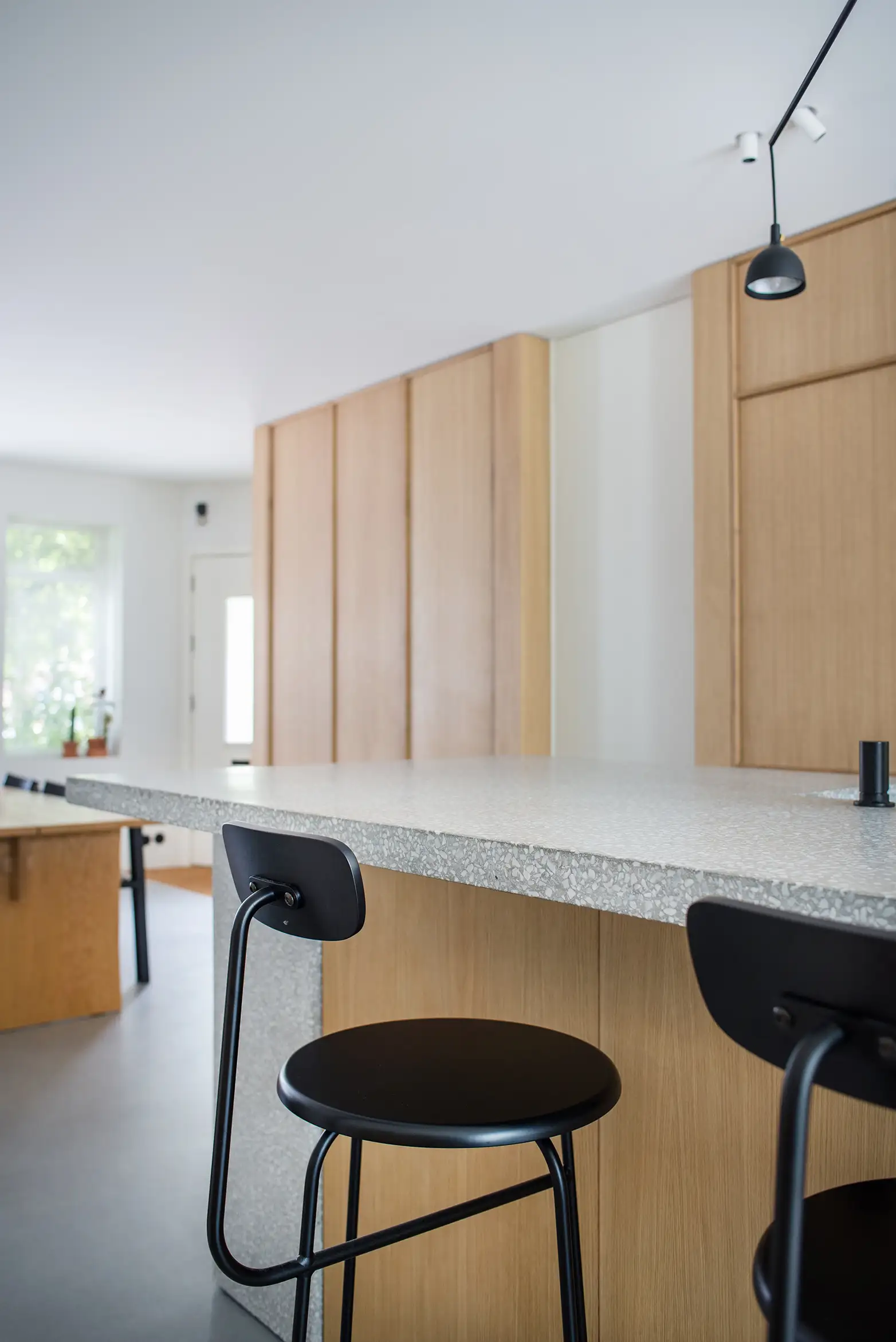 De grote glazen schuifdeuren aan de buitenzijde die in de zomer altijd open staan, nodigen de bewoners uit om de (kruiden)tuin vaak als verlengstuk van de woonkamer te gebruiken.